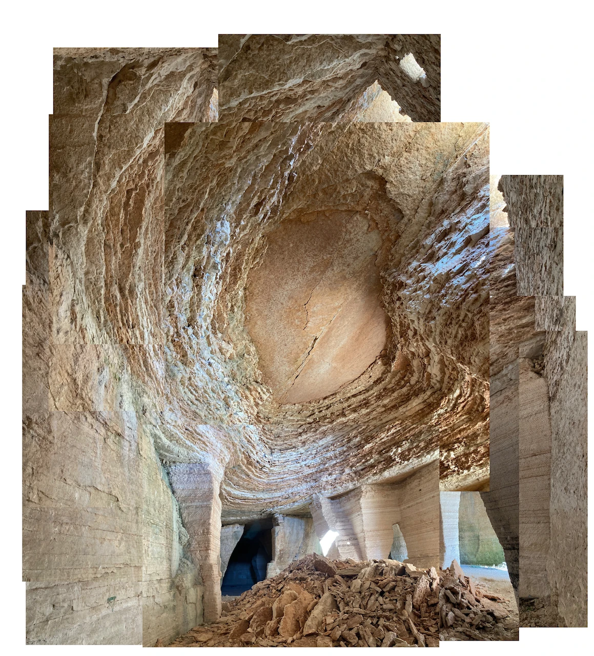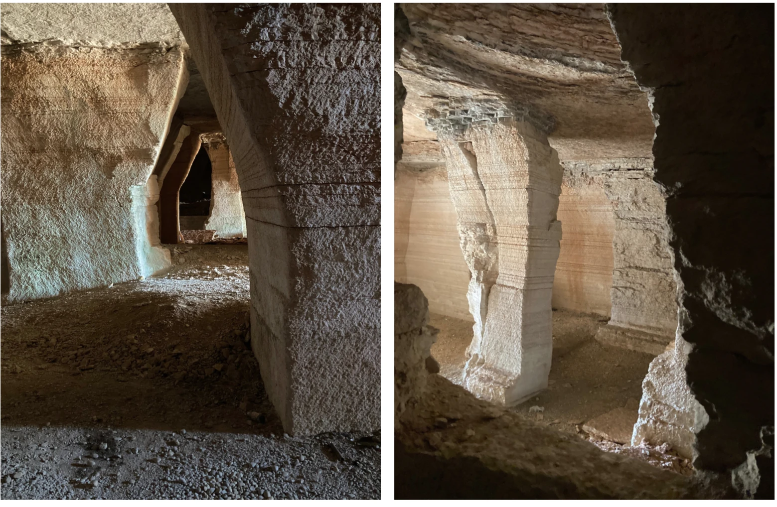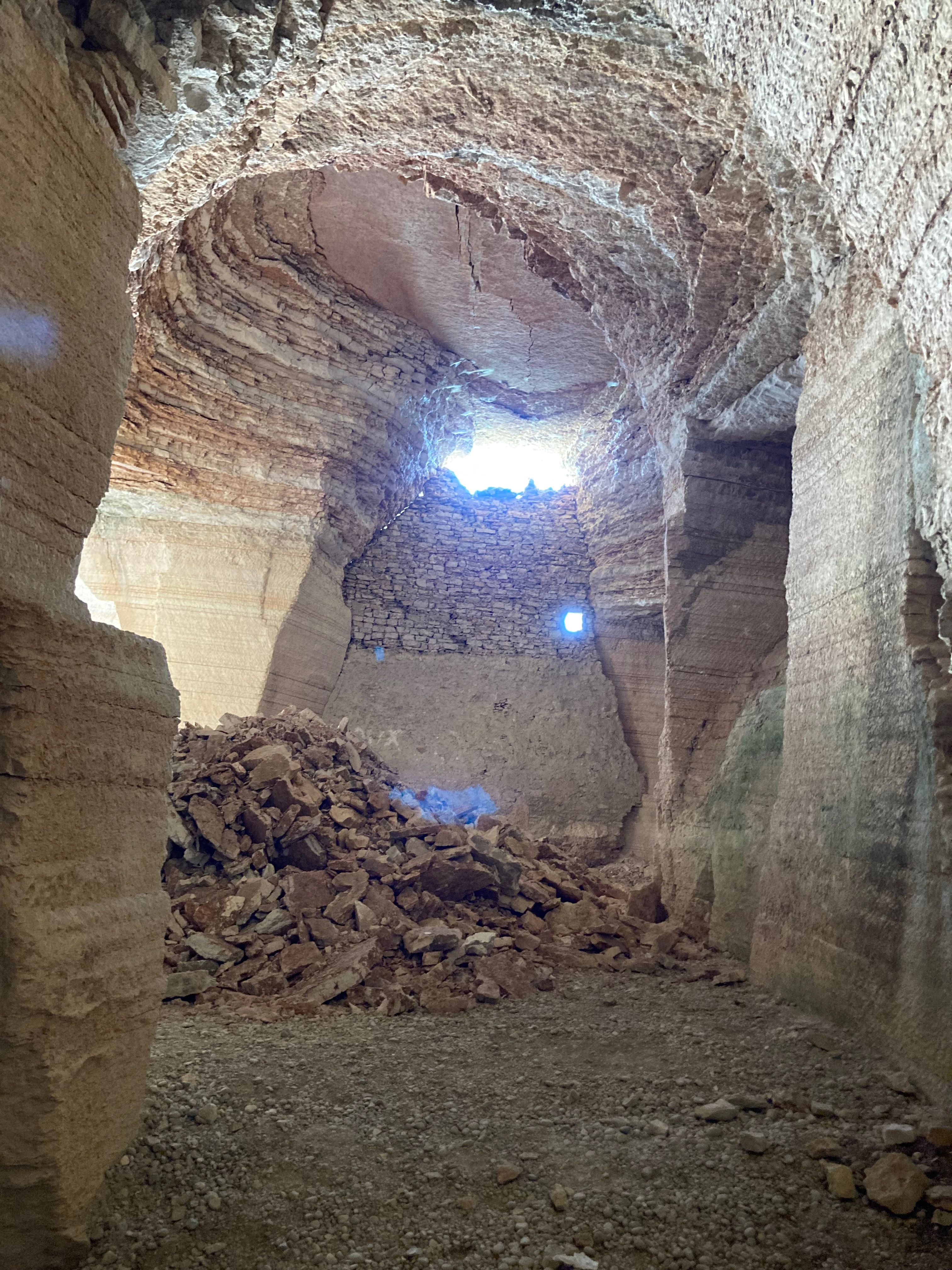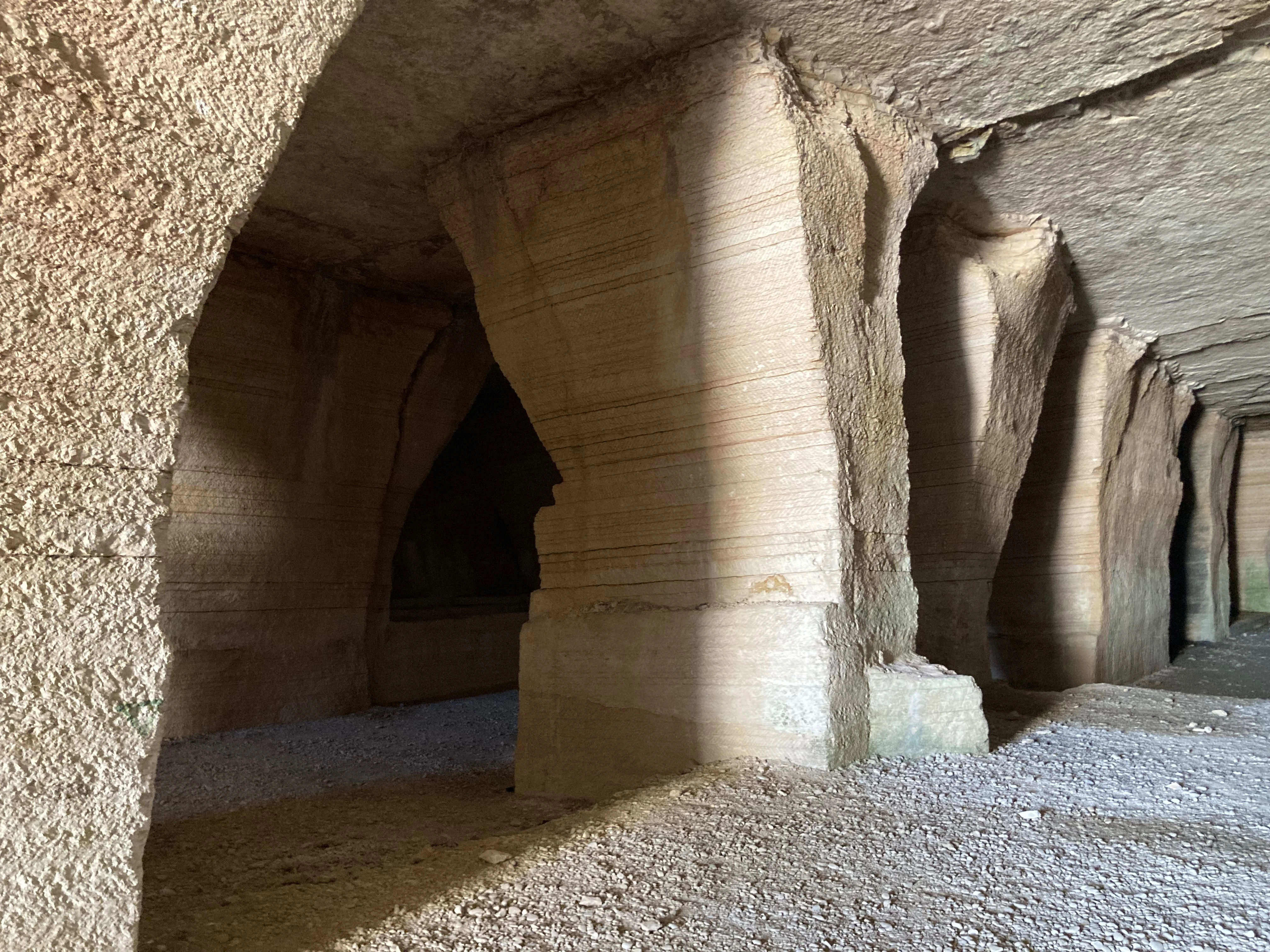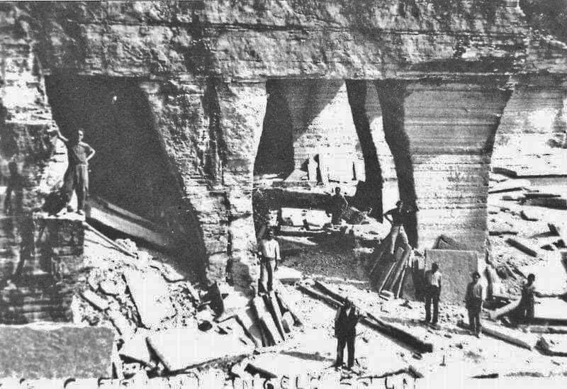 Nel caso della nostra cava si dice che l’estrazione si fermò intorno al 1935, in quel momento si preferì il lavoro nelle cave a cielo aperto, sia per la sicurezza degli uomini, sia per la comodità dei nuovi macchinari per il prelievo del materiale roccioso, specie per la rottura del cappellac- cio, la parte superficiale agli strati di interesse commerciale.