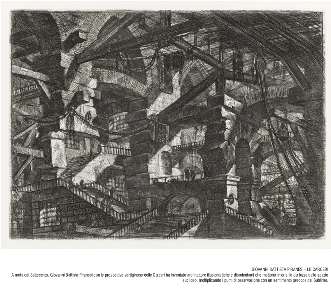 Ispirazione progettuale si trova negli spazi immaginari dell’opera di Giovanni Battista Piranesi, le sue Carceri d’invenzione realizzano una visione degli interni in forte risonanza con il nostro caso.